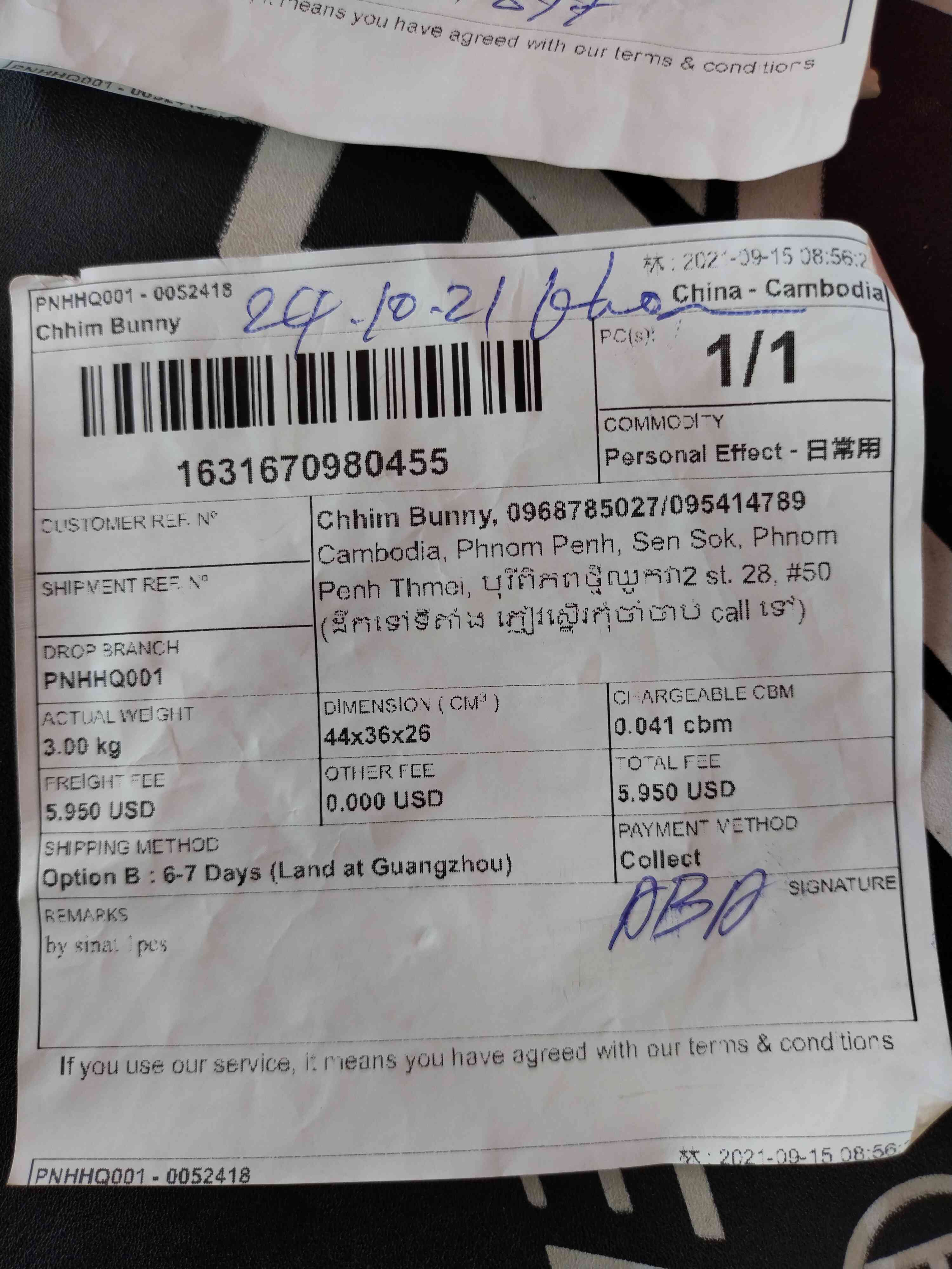 Receivered by: Chhim Bunny , 0968785027